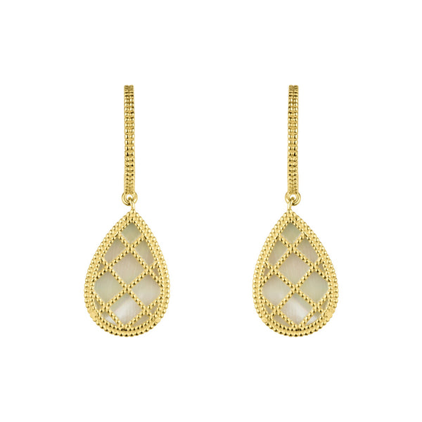 9ct Yellow Gold Mother of Pearl Beaded Drop Earrings