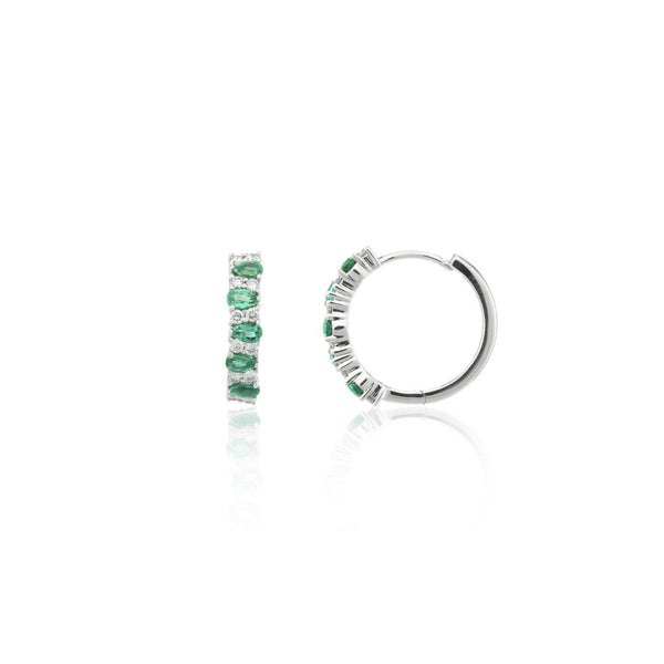 9ct White Gold Pear Emerald & Diamond Hoop Earrings