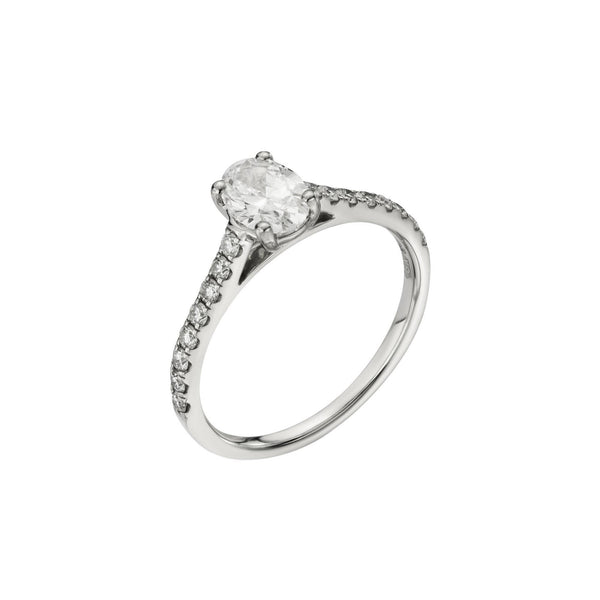 Platinum Oval Cut Diamond Solitaire Ring with Diamond Shoulders, 0.81ct