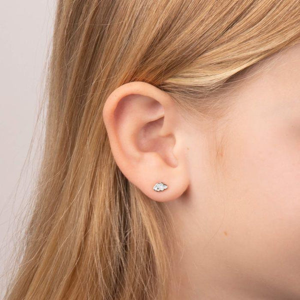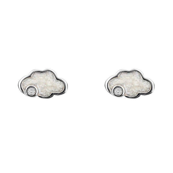 Silver Pearlised Enamel & Diamond Cloud Stud Earrings