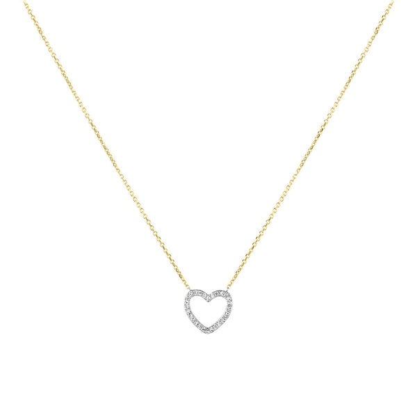 9ct Yellow Gold Diamond Heart Necklace with 16/ 18 Chain