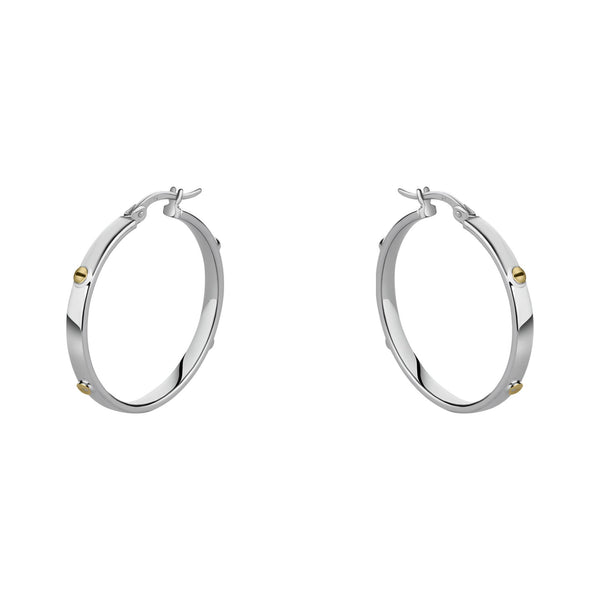 9ct 3mm White Gold Hoop Earrings With Yellow Gold Screw Heads