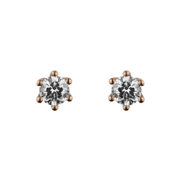 9ct Rose Gold Diamond Stud Earrings Six Claw Set