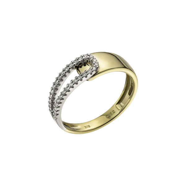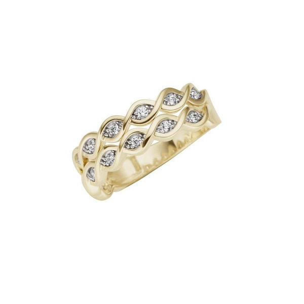 9ct Yellow Gold Diamond Two Row Wave Band Ring