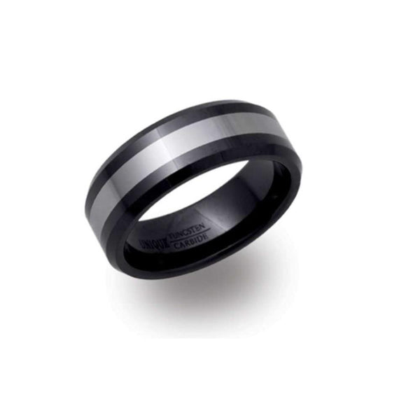 Tungsten Carbide Rose IP Plated Ring With a Wood Inlay