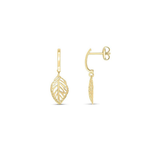 9ct Yellow Gold Openwork Leaf & Bar Drop Earrings