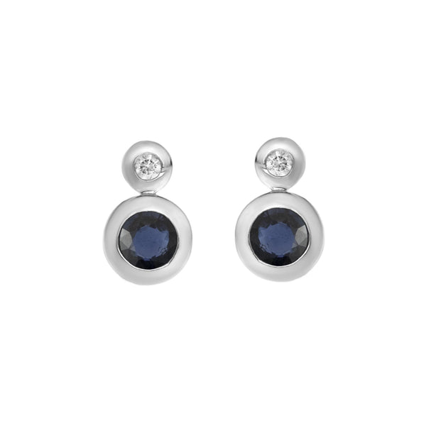 9ct White Gold Sapphire & Diamond Two Stone Stud Earrings