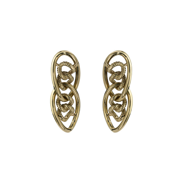 9ct Yellow Gold Double Link Polished & Textured Link Drop Earrings