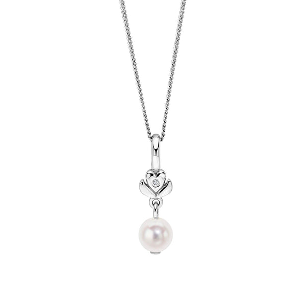 Silver Diamond & Freshwater Pearl Flower Pendant