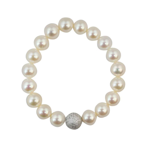 14ct White Gold Pave` Set Diamond Ball Catch on Freshwater Pearl