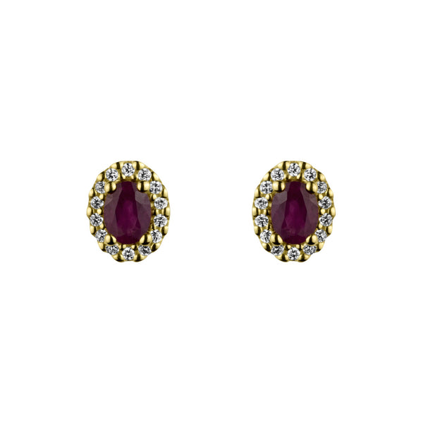 9ct Yellow Gold Oval Ruby & Diamond Halo Earrings