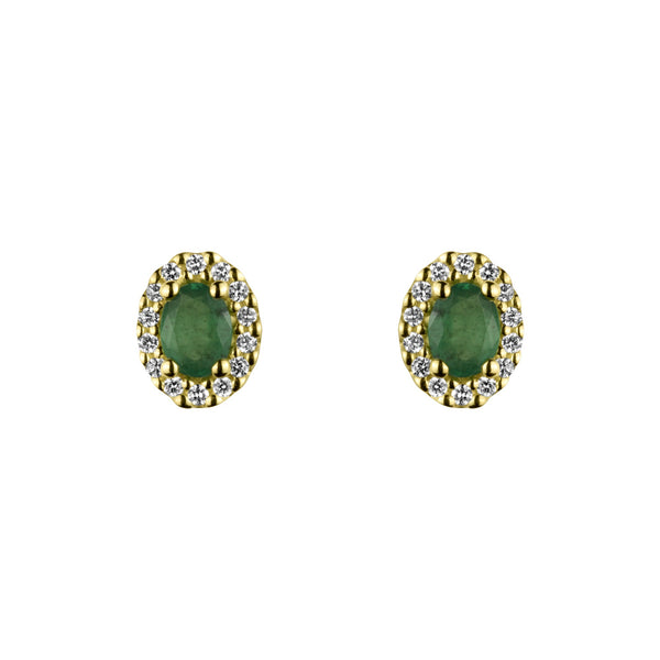 9ct Yellow Gold Oval Emerald & Diamond Halo Earrings