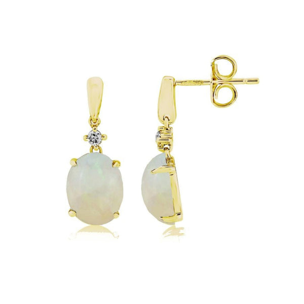 9ct Yellow Gold Opal and Diamond Drop Earrings
