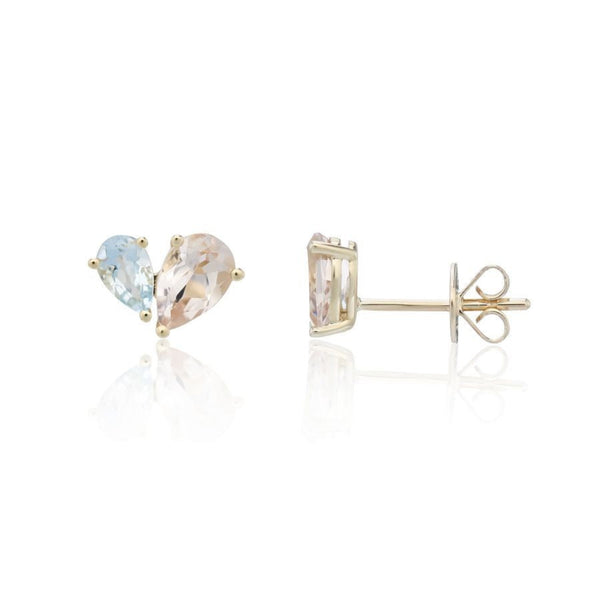 9ct Yellow Gold Aquamarine and Morganite Pear Stud Earrings