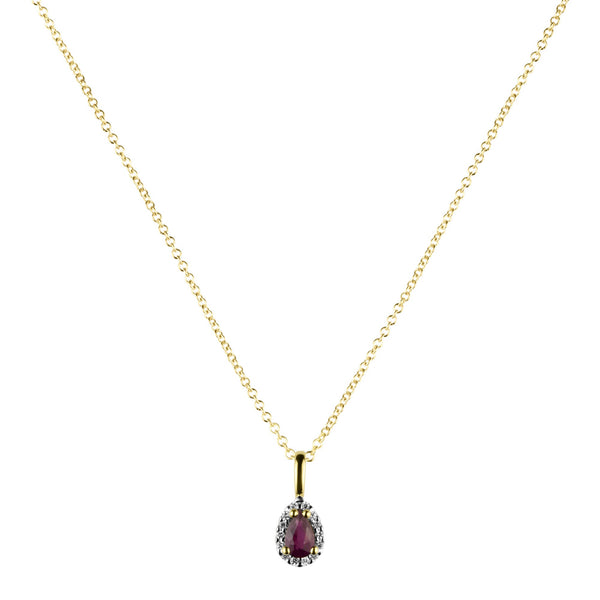 9ct Yellow Gold Pear Shape Ruby & Diamond Halo Pendant