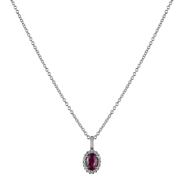 9ct White Gold Oval Ruby & Diamond Halo Pendant