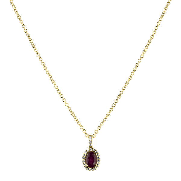 9ct Yellow Gold Oval Ruby & Diamond Halo Pendant