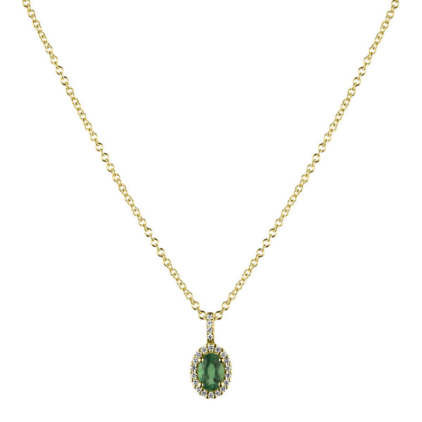 9ct Yellow Gold Oval Emerald & Diamond Halo Pendant