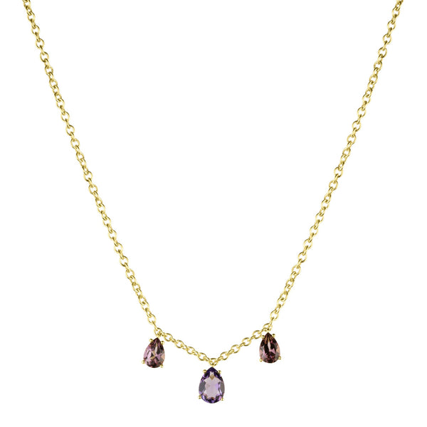 14ct Yellow Gold Pear Amethyst & Pink Rhodolite Garnet Necklace