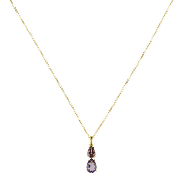 9ct Yellow Gold Pear Shape Amethyst & Pink Rhodolite Garnet Pendant