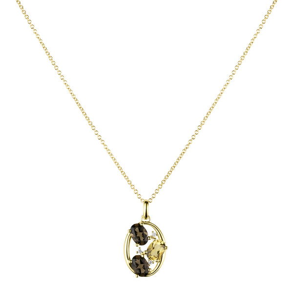 9ct Yellow Gold Citrine, Smoky Quartz & Diamond Pendant