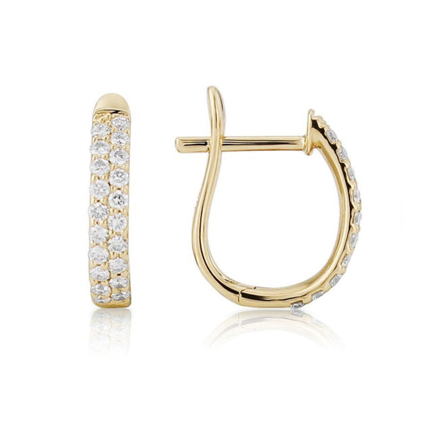 18ct Yellow Gold Pave Set Double Row Hoop Earrings