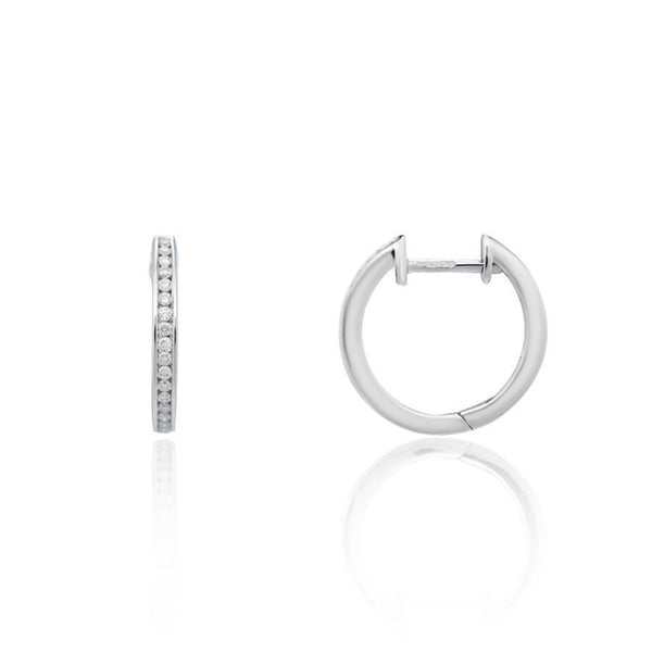 9ct White Gold Diamond Channel Set Hoop Earrings