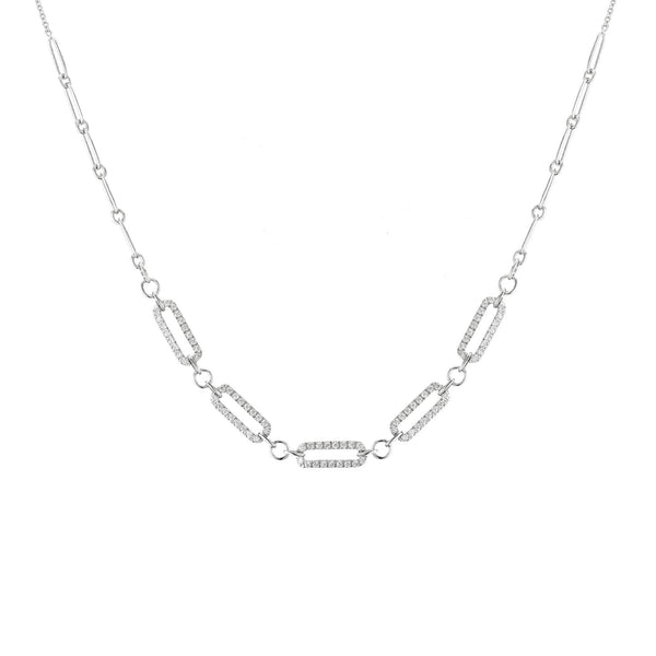 9ct White Gold Diamond Set Graduated Oblong Link Centrepiece Necklace