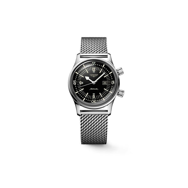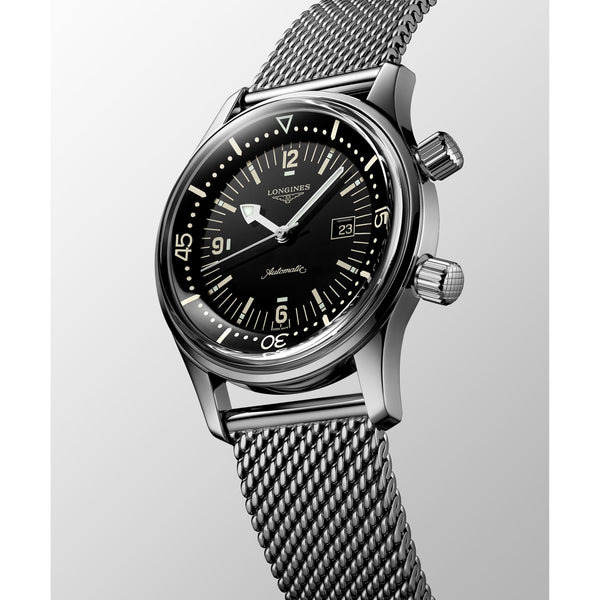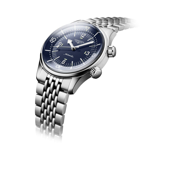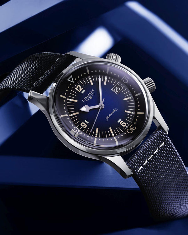 The Longines Legend Diver 39mm offers a stunning array of colour options to suit every style and preference. This iconic timepiece is available in 5 vibrant colours. The original classic sleek black dial for a classic look, or a vibrant denim blue that evokes the depths of the ocean, and new additions to the collection, a refreshing green that brings to mind lush forests, an understated grey version which provides a sophisticated touch, or a unique terracotta option which adds a warm, earthy tone to your wrist. Each colour variant of the Legend Diver 39mm maintains Longines' commitment to quality and precision, combining vintage-inspired design with modern watchmaking technology. Whether you're diving into azure waters or navigating urban landscapes, this versatile timepiece is sure to make a statement.