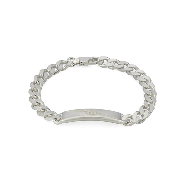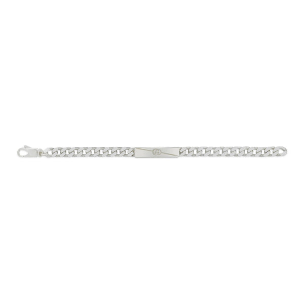 Gucci Tag Silver & Black Rubber-Effect Leather Bracelet - Size 19