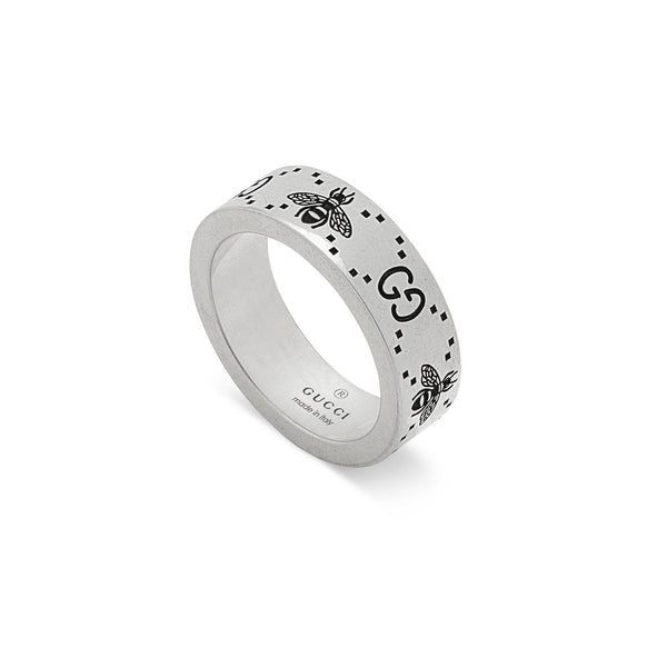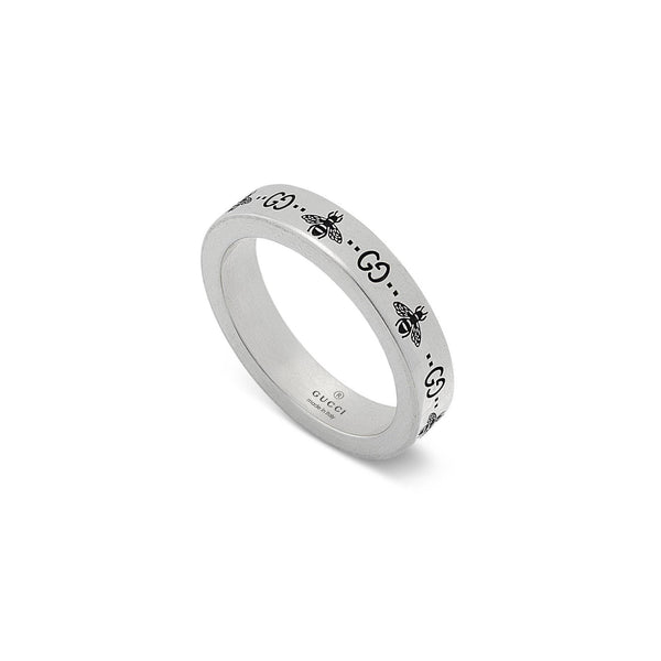 Gucci Signature Silver Bee 6mm Ring - Size 19