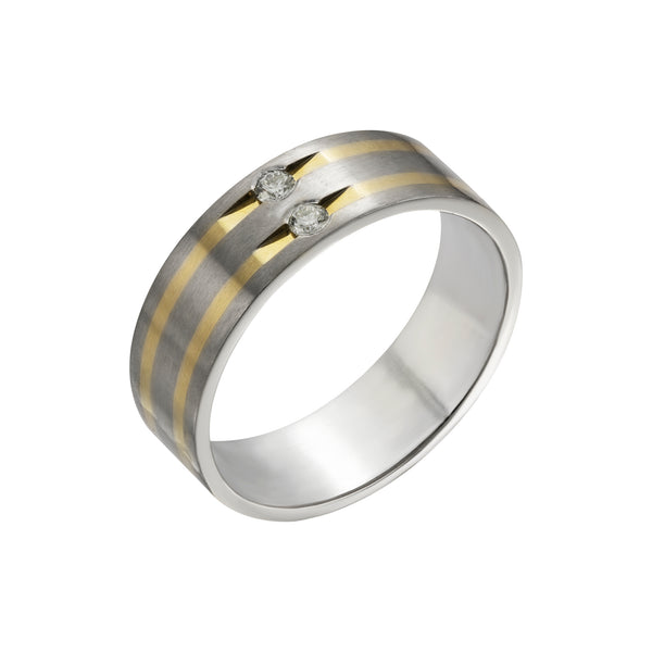 18ct White Gold 6mm Black & White Rhodium Plated Wedding Band