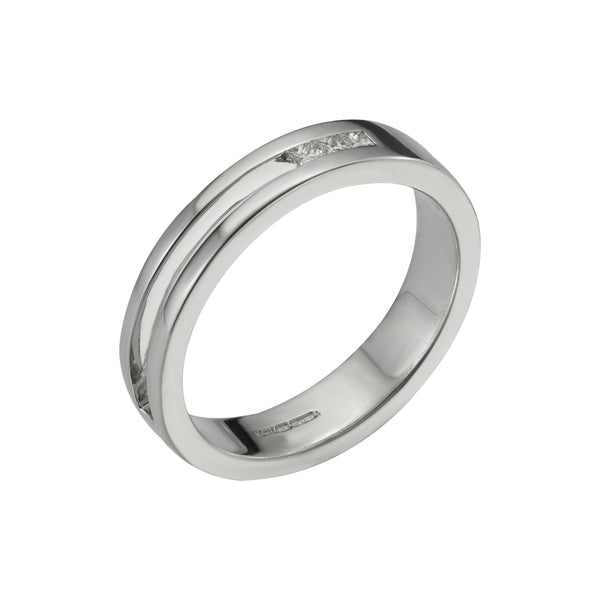 18ct White Gold Princess Cut Diamond Wavy Wedding Band