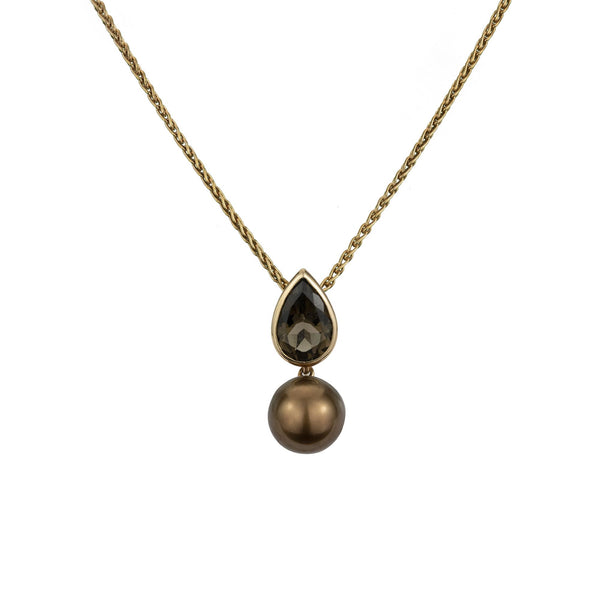 14ct Rose Gold Smoky Quartz Brown Tahitian Pearl Pendant