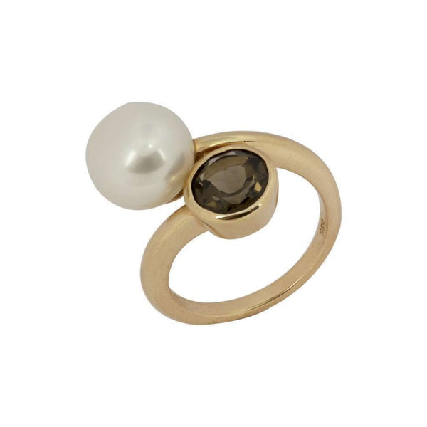 14ct Rose Gold Round Smokey Quartz & Round Button Cultured Pearl Dress Ring