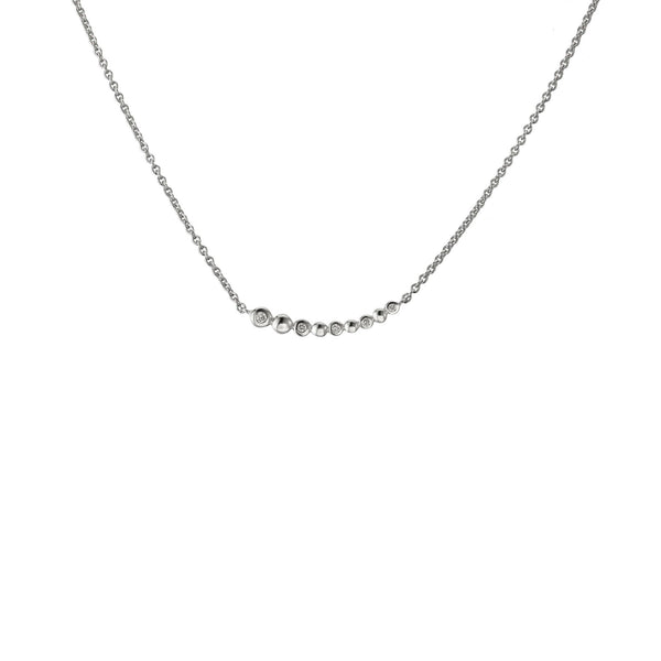 14ct White Gold Graduated Curved Diamond Bar Necklace