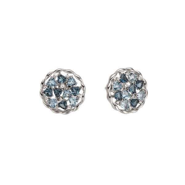 14ct White Gold Round Diamond & Trillion Cut Blue/London Blue Topaz Stud Earrings