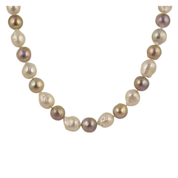 14ct Yellow Gold Diamond Ball Catch On 11-12mm Freshwater Brown Pearl & White Freshwater Baroque Pearl Necklet