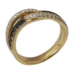 18ct Rose Gold Round Brilliant Cut Black & White Diamond Cross Over Ring, Black Diamonds Total Weight 0.24ct, White Diamonds Total Weight 0.34ct, Total Diamond Weight 0.58ct.
