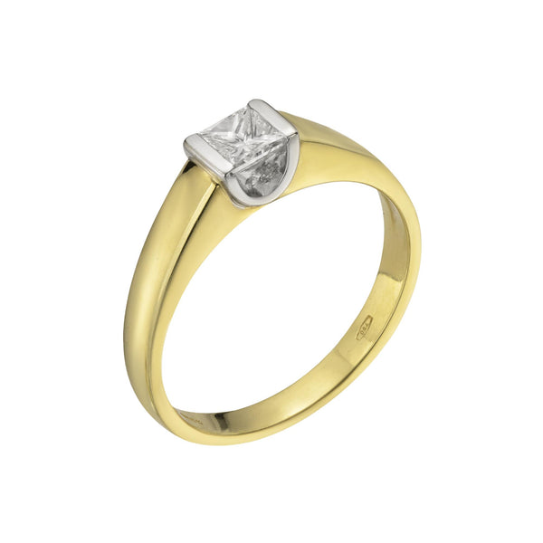 18ct Yellow & White Gold Princess Cut Diamond Single Stone Ring 0.38ct