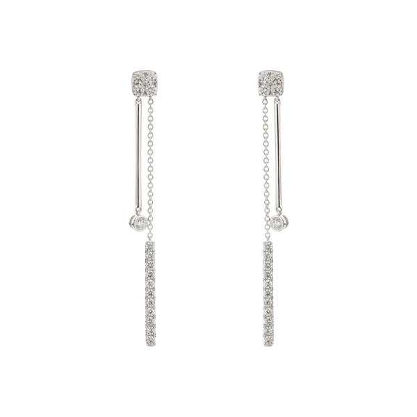 18ct White Gold Diamond Set Long Bar & Chain Drop Earrings