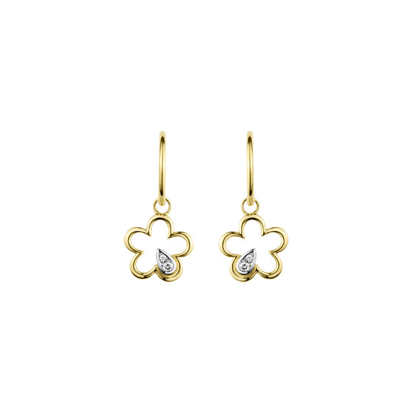 18ct Yellow & White Gold Diamond Open Flower Drop Hoop Earrings