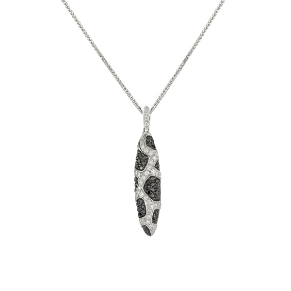 18ct White Gold Black and White Diamond Torpedo Shaped Pendant, 16" Chain Included, Total Diamond Weight 0.95ct