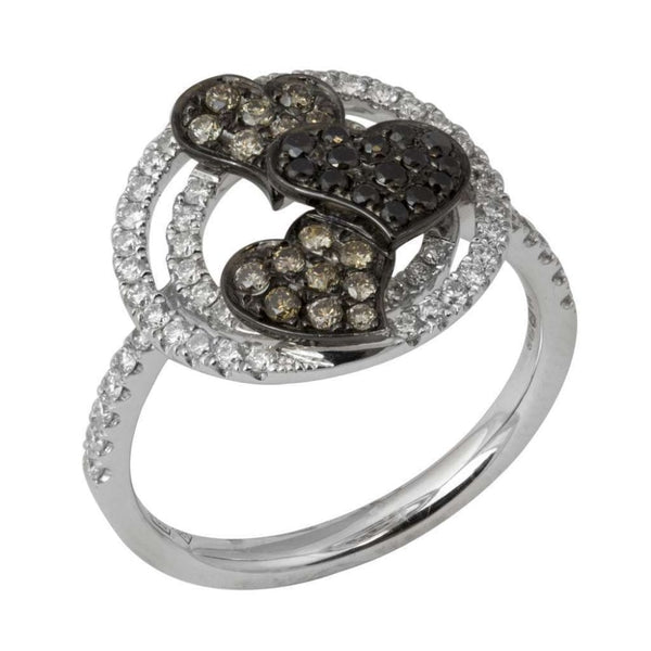18ct White Gold Brown & Black Hearts Diamond Ring