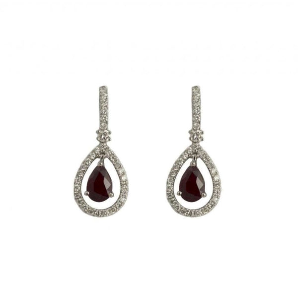 18ct White Gold Diamond Bar and Ruby Diamond Pear Drop Earrings