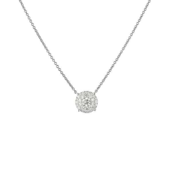 18ct White Gold Diamond Cluster Pendant, Round Cut Diamonds Illusion Set, Total Diamond Weight at 0.79ct