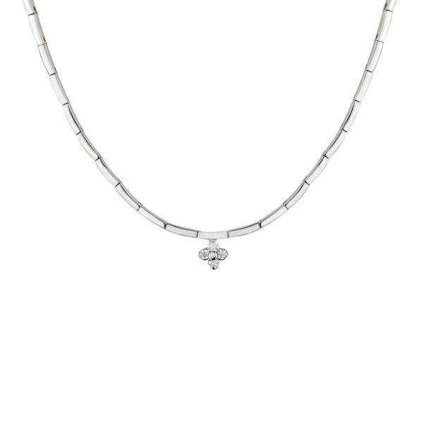 18ct White Gold Diamond Flower Centre Piece Collarette