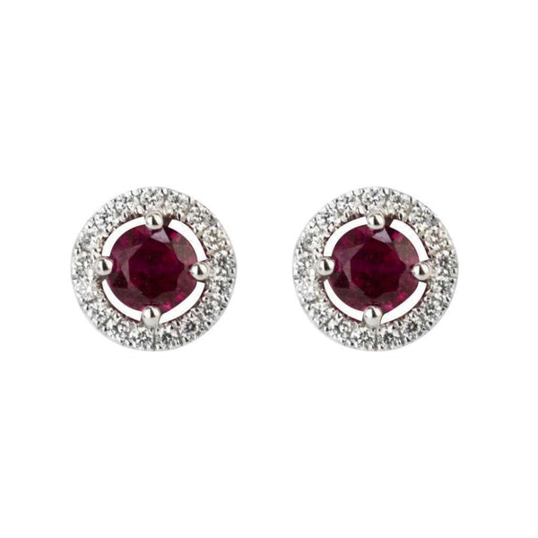 18ct White Gold Diamond Halo and Ruby Stud Earrings