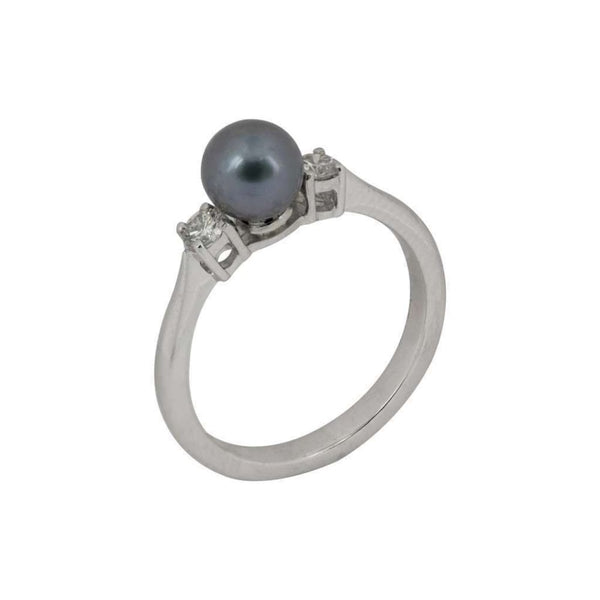 18ct White Gold Diamond & Pearl Three Stone Dress Ring Grey Pearl In Centre Round Diamond Claw Set At Each Side Of Pearl Diamond Weight 0.17ct