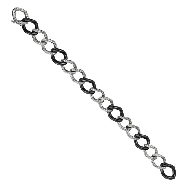 18ct White Gold Diamond Set Curb Style Links Black Ceramic Bracelet